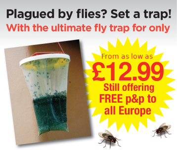 Red Top Fly Catcher can be bought online from just £16.99 each for 1 to 9 traps, or £14.99 each for 10+ traps (£149.90), £14.49 each for 20+ traps (£289.80), £13.99 each for 30+ traps (£419.70), £13.49 each for 50+ traps (£674.50) or £12.99 each for 100+ traps (£1299.00). These prices include VAT and P&P. ( EU customer do not pay VAT. Online ordering unavailable to Germany, Spain or Portugal, please call to order.).