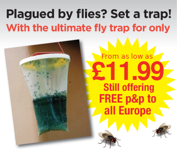 Red Top Fly Catcher can be bought online from just £14.99 each for 1 to 9 traps, or £13.99 each for 10+ traps (£139.90), £13.49 each for 20+ traps (£269.80), £12.99 each for 30+ traps (£389.70), £12.49 each for 50+ traps (£624.50) or £11.99 each for 100+ traps (£1199.00). These prices include VAT and P&P. ( EU customer do not pay VAT. Online ordering unavailable to Germany, Spain or Portugal, please call to order.).